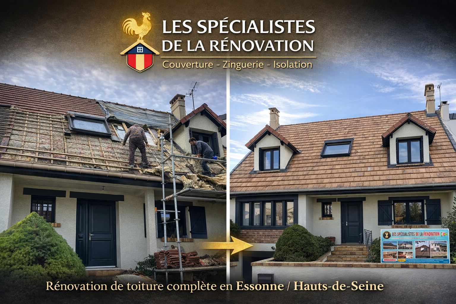 Fondée en 2014, Les Spécialistes de la Rénovation est une entreprise du bâtiment reconnue pour son savoir-faire en couverture, rénovation complète et travaux de charpente. Nous accompagnons les particuliers et professionnels dans tous leurs projets de rénovation de toiture et d’amélioration de l’habitat en Essonne et dans les Hauts-de-Seine